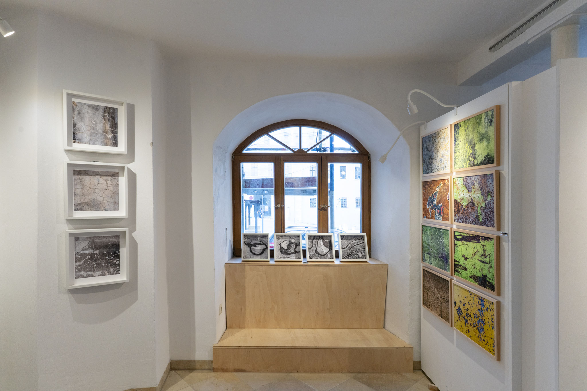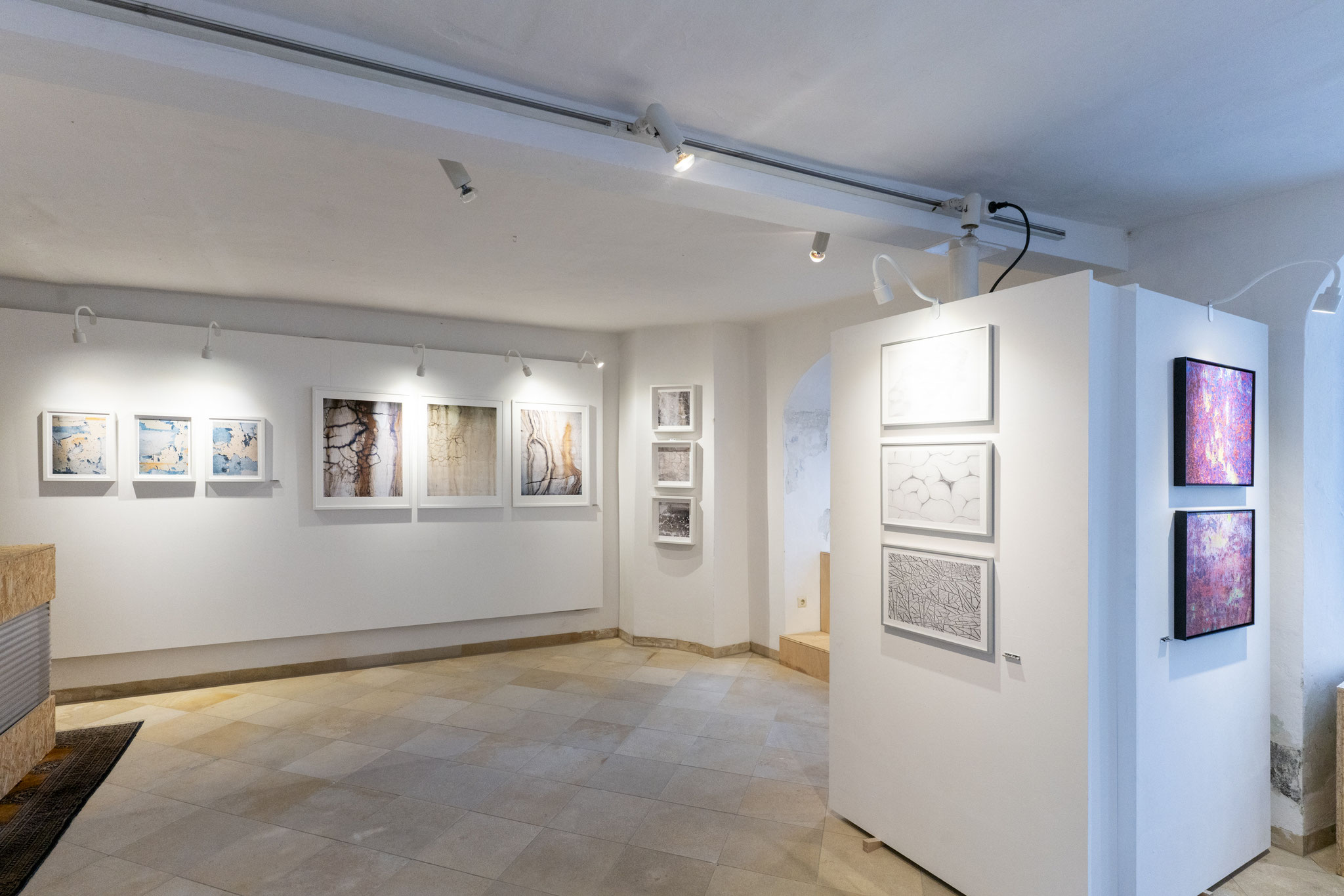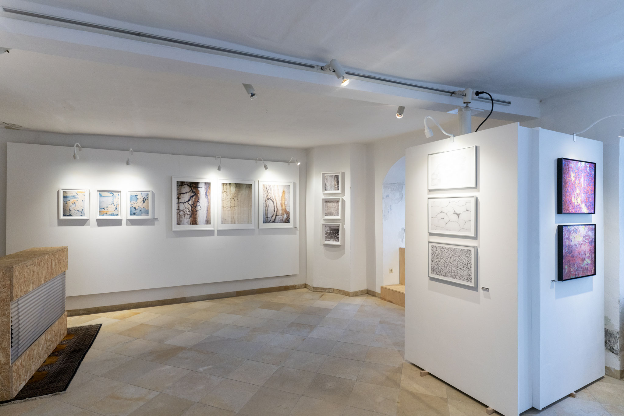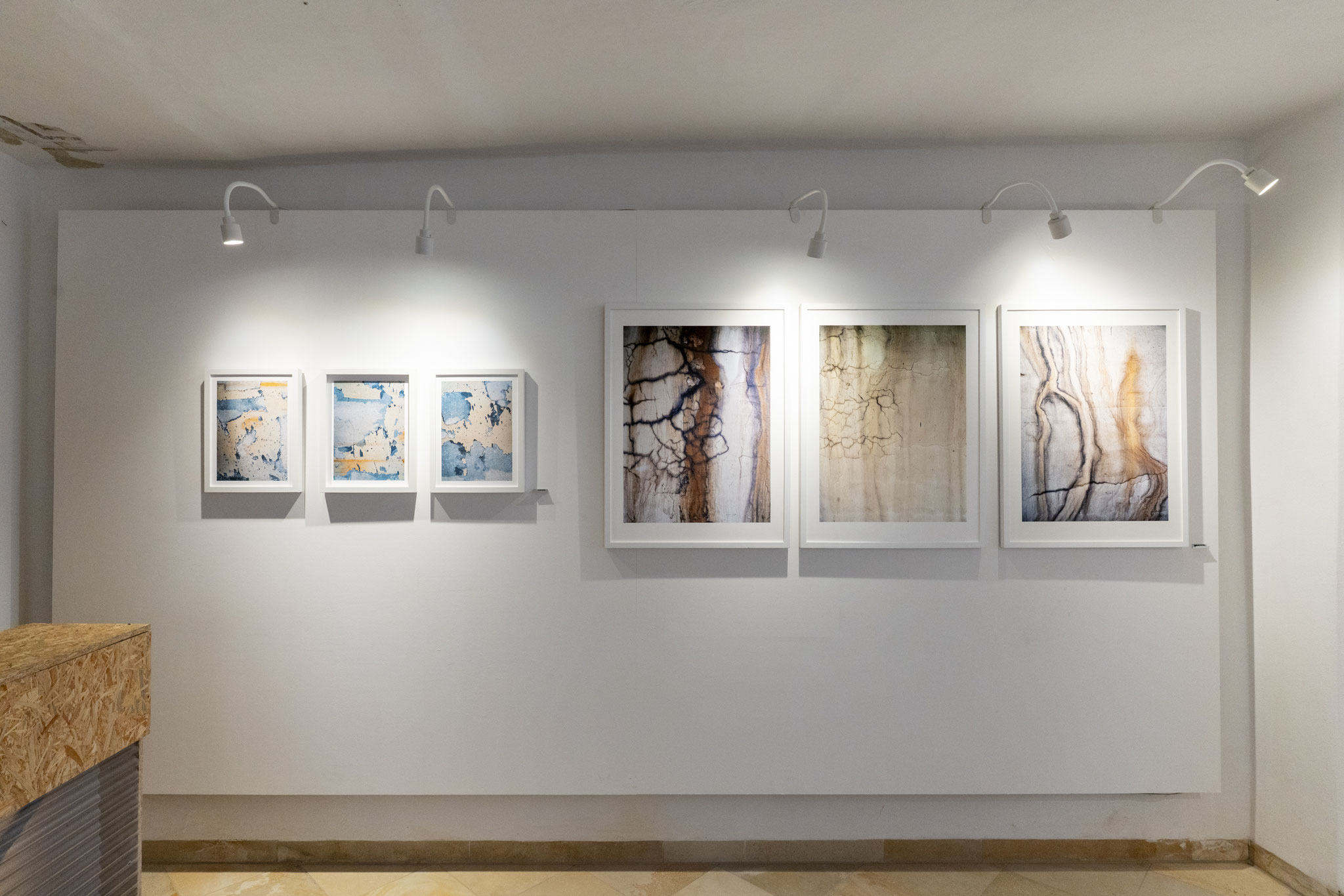 Die Serie Texturen geht noch einen Schritt weiter. Klotzeck isoliert Oberflächen wie Wandputz, Gestein oder bearbeitete Materialien aus ihrem Umfeld. Maßstab und Ort verlieren sich – was bleibt, sind Strukturen, die an Satellitenaufnahmen ferner Landschaften erinnern oder an mikroskopische Welten. Es sind Bilder zwischen Mikro- und Makrokosmos, die das Auge zum Schweifen und Suchen anregen.